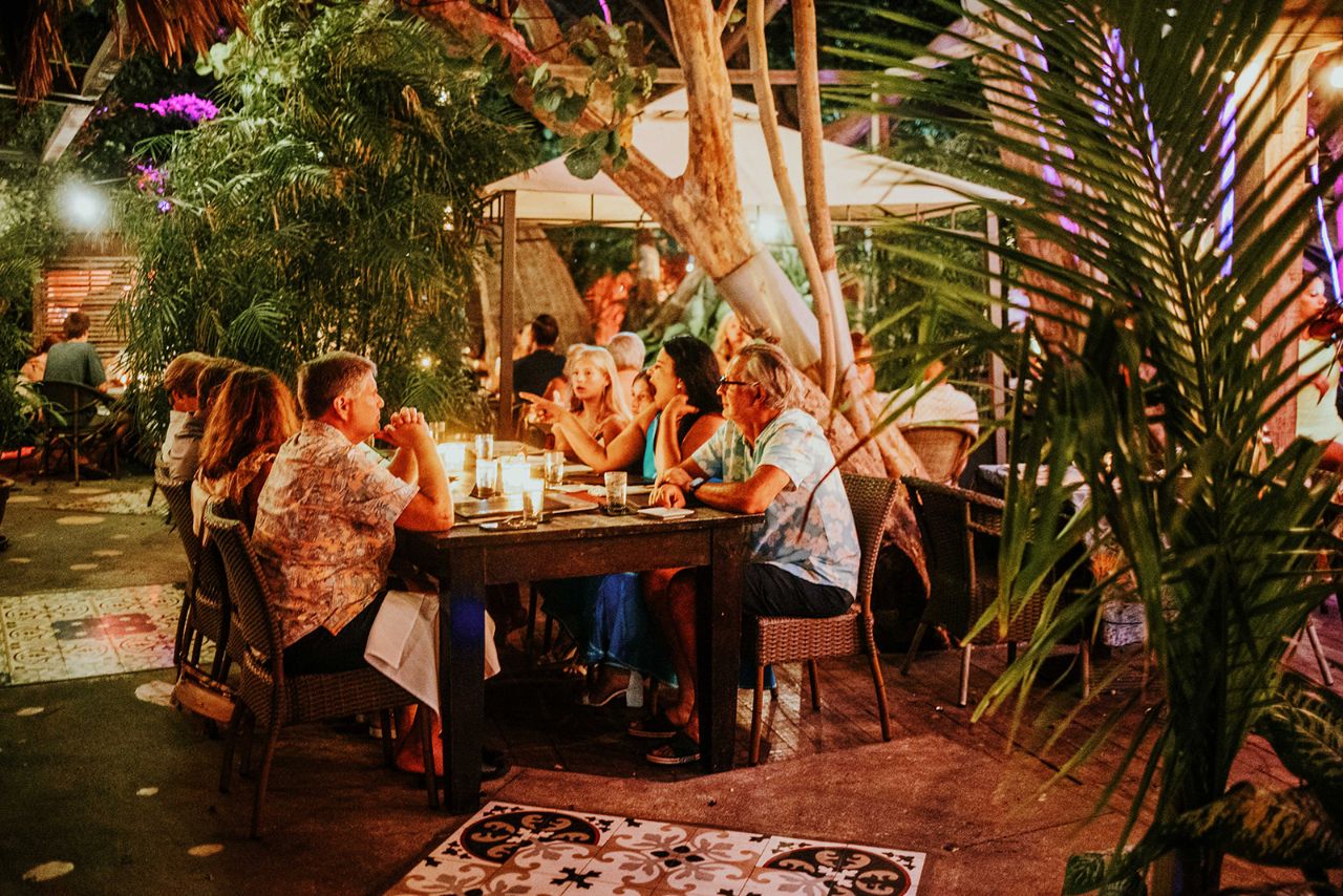 Step into a hidden oasis at Bohemian Bar & Restaurant, where “French flair meets Bohemian magic.” Located in the bustling Palm Beach area (on the corner of the Barceló Resort), this unique venue feels worlds away with its lush, secret garden setting. Founded by the Nataf family—French nomads with a deep culinary heritage—Bohemian offers an unconventional and eclectic dining experience under the stars. The atmosphere is a blend of a tropical garden and a New York-style industrial bistro, characterized by large wooden doors, hanging rattan lights, and waiters sporting suspenders and berets.