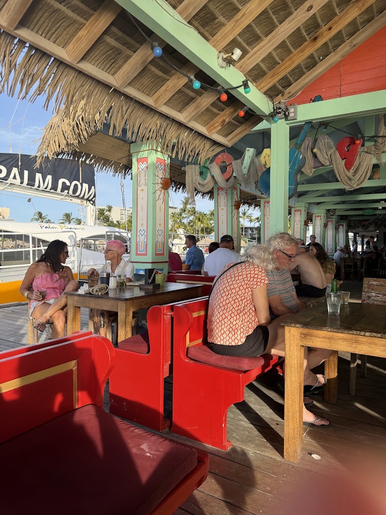 Get ready to sing, dance, and dine on the water at Bugaloe Beach Bar & Grill. Perched at the end of De Palm Pier in the heart of Palm Beach, this vibrant and colorful bar offers 360-degree ocean views and an infectious “One Happy Island” energy. It is the perfect spot to transition from a lazy beach day to a lively evening.