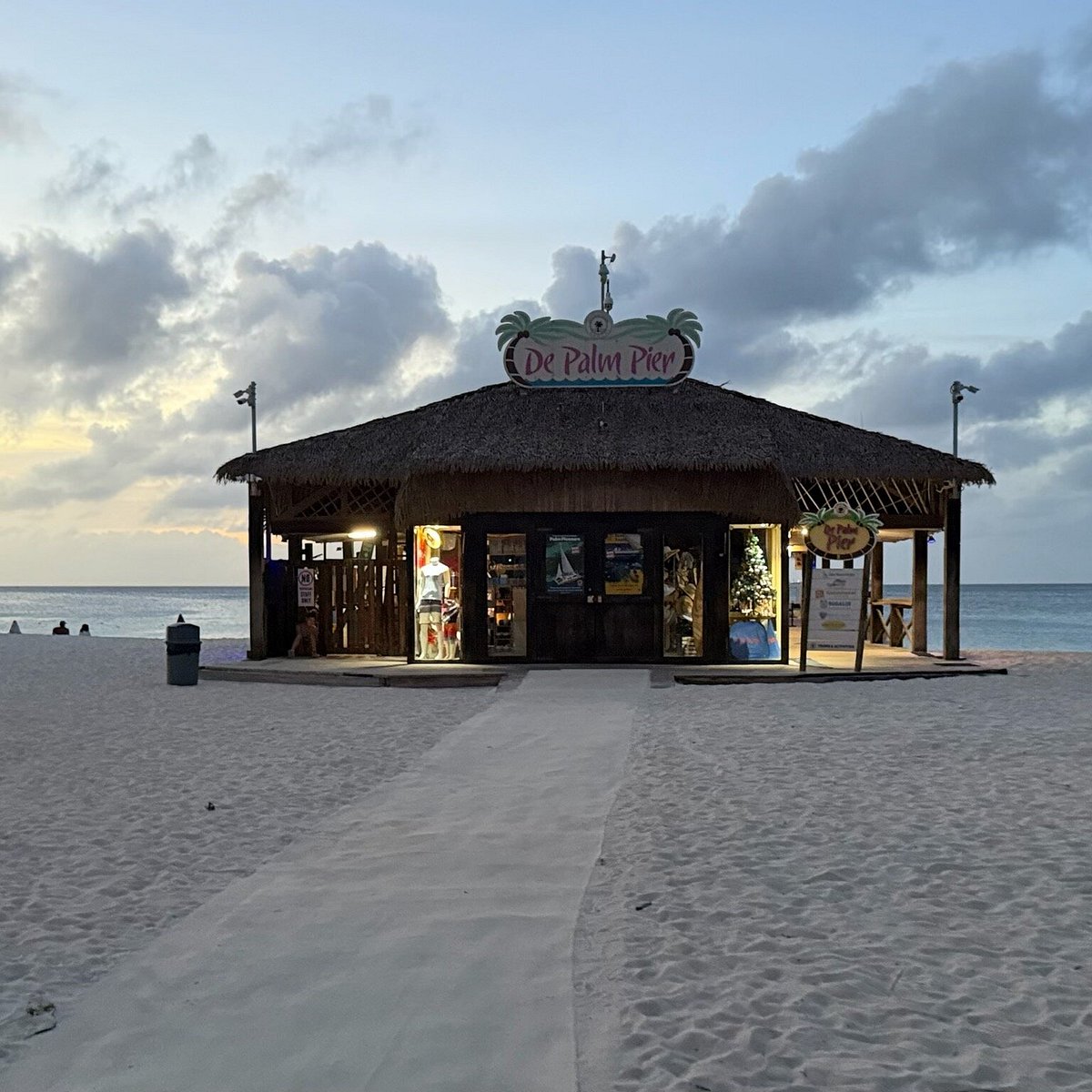 De Palm Pier is an iconic wooden pier extending into the turquoise waters of Palm Beach, serving as one of the island’s most recognizable landmarks. It functions as a multifaceted entertainment hub, housing the famous Bugaloe Beach Bar & Grill, a water sports center, and a departure point for various coastal excursions. It is a primary destination for those who want to experience the quintessential “pier life” of Aruba, offering a 360-degree view of the coastline and a constant buzz of activity from sunrise to late night.