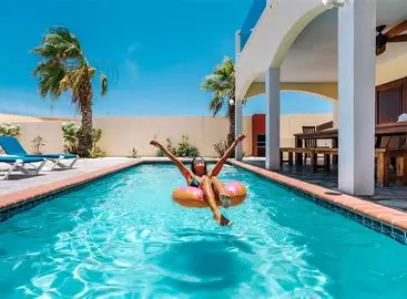 Located in the quiet upscale neighborhood of Salina Cerca, Merlot Villas Aruba offers a unique blend of privacy and proximity. This secure, gated community consists of contemporary 4 and 5-bedroom private villas, each standing on its own plot with a walled garden. Unlike a shared resort complex, staying here means you have your own private sanctuary complete with a personal swimming pool, a landscaped garden, and a roof terrace offering sunset views. While it feels secluded, it is situated just 750 yards (about a 10-minute walk) behind the Marriott and Ritz-Carlton resorts, putting guests within easy reach of Palm Beach’s casinos, nightlife, and watersports without the noise and crowds of the hotel zone. It is a top choice for large family reunions or groups of friends who want to stay together under one roof with high-end amenities.