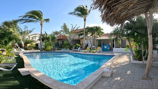 Tucked away in a quiet residential cul-de-sac in Noord, Palm Garden Apartments is a charming, budget-friendly hideaway that offers a peaceful retreat just minutes from the action. This intimate complex is comprised of just a handful of cozy studio apartments set within a lush, meticulously maintained tropical garden. It is a favorite among Dutch travelers and value-conscious couples who appreciate the “small-scale” atmosphere where the hosts know you by name. While located inland, it is strategically positioned just a 15-minute walk (or 2-minute drive) from the white sands of Palm Beach and the bustling High-Rise hotel strip, offering the perfect balance of serenity and accessibility.