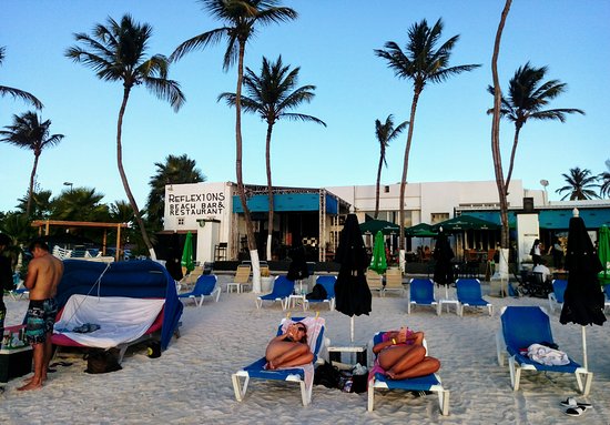 Reflexions Beach Bar & Restaurant is an upscale seaside venue located on Surfside Beach in Oranjestad. It differentiates itself from standard beach shacks by offering a “Beach Club” experience, complete with a private pool, white lounge beds, and a more polished atmosphere. It is a primary destination for travelers who want to combine the natural beauty of the Caribbean shore with the amenities of a high-end resort, all while remaining close to the downtown harbor and airport.