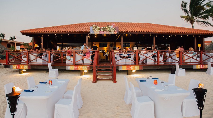 Previously famous for its beachfront location at the Aruba Beach Club, Ricardo’s Restaurant & BarClick to open side panel for more information has recently moved to a new home in the Orange Plaza Mall. Despite the change in scenery—from ocean views to a cozy mall courtyard—the restaurant has retained its loyal following thanks to the vibrant personality of owner Ricardo (and his team, Anky & Harold) and its legendary theme nights.