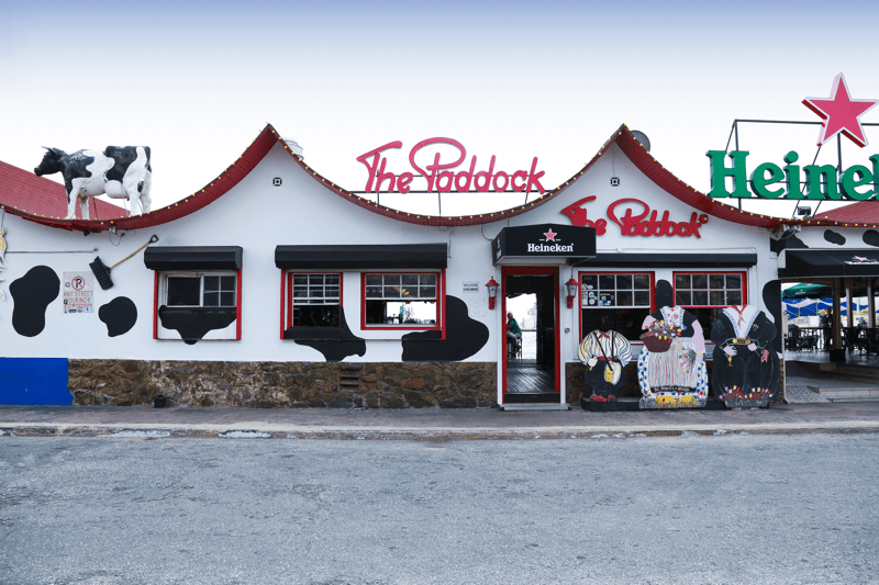 Easily recognized by its cow-print roof and prime location on the Oranjestad marina, Eetcafe The PaddockClick to open side panel for more information is an Aruban institution that brings the traditional Dutch “brown café” vibe to the Caribbean. Located just steps from the cruise ship terminal, this open-air eatery has been a favorite watering hole for decades, offering a laid-back, unpretentious atmosphere where thousands of banknotes from around the world are stapled to the ceiling by past visitors. While it is arguably most famous for its stunning, unobstructed views of the harbor—perfect for watching cruise ships dock or the sun set—it is also beloved for its affordability. The menu features a mix of international comfort food and authentic Dutch snacks, including Bitterballen (fried meat ragout balls), Frikandel (minced meat hot dogs), and their legendary $12 Fish & Chips. Whether you are looking for a cold beer, a quick lunch, or a casual dinner with a view, The Paddock offers a fun, quirky slice of local culture that won’t break the bank.